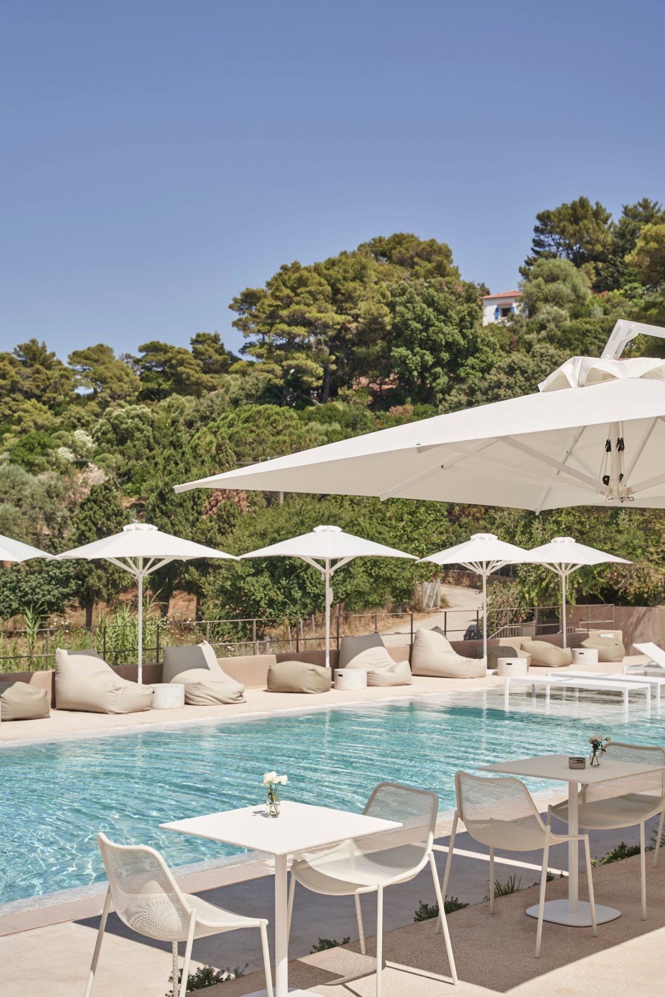 - Шезлонги и чадъри на басейна