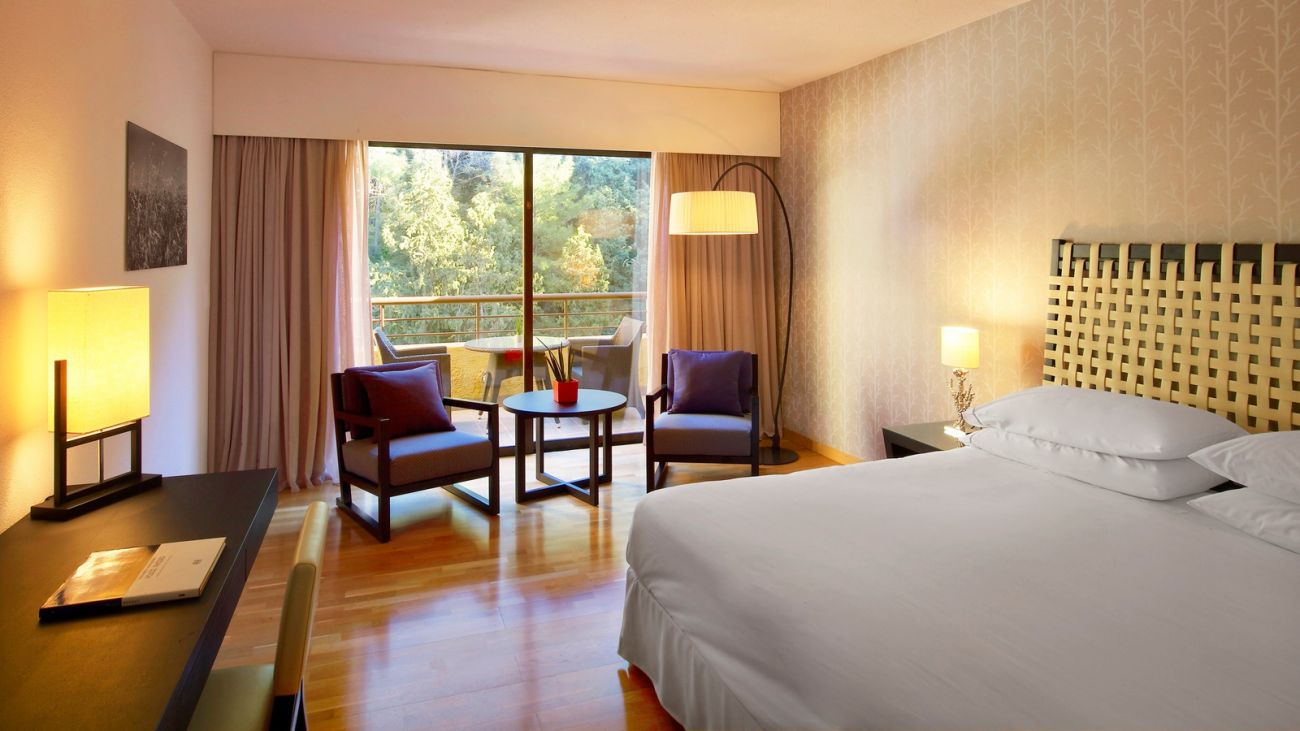 401 стаи. Всички климатизирани стаи в хотелски комплекс Resort Sheraton Rhodes разполагат с обзаведен балкон, с изглед към Егейско море или планините и градините. Всяко помещение за настаняване е оборудвано с LCD телевизор със сателитни програми и хладилник. Мраморните бани са с халати и луксозни тоалетни принадлежности.