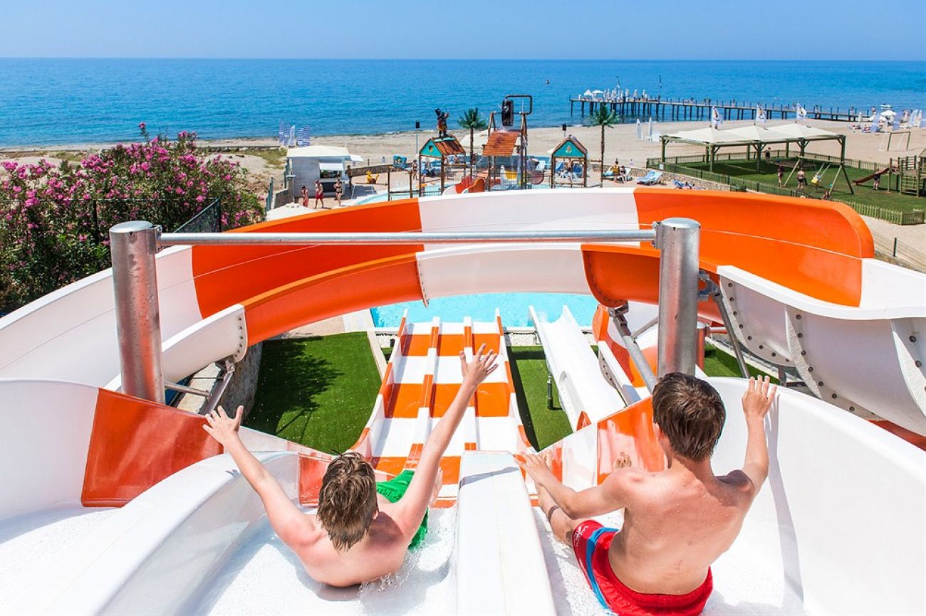 Собствен, пясъчно-чакълест плаж, удостоен със сертификат "Син флаг". Чадъри, шезлонги и матраци на плажа и при басейна – безплатно. Плажни кърпи – безплатно.