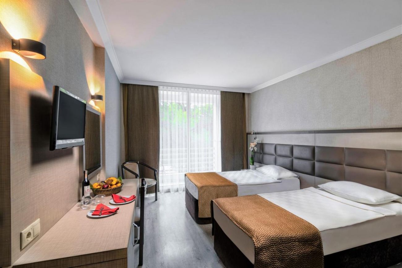 Хотела разполага с основен ресторант, 5 бара, 1 външен басейн, 1 закрит басейн и 1 детски басейн. Безплатни услуги: фитнес,аеробика, тенис на маса, дартс, турска баня, сауна, плажни хавлии,шезлонги и чадъри, конферентна зала, водни игри, един път в седмицата турско шоу, дискотека. За децата: анимация, мини клуб (04-12), детски басейн, детско меню. Платени услуги: масажи, сейф, джакузи, детски колички и столчета, спа, теледон и факс.