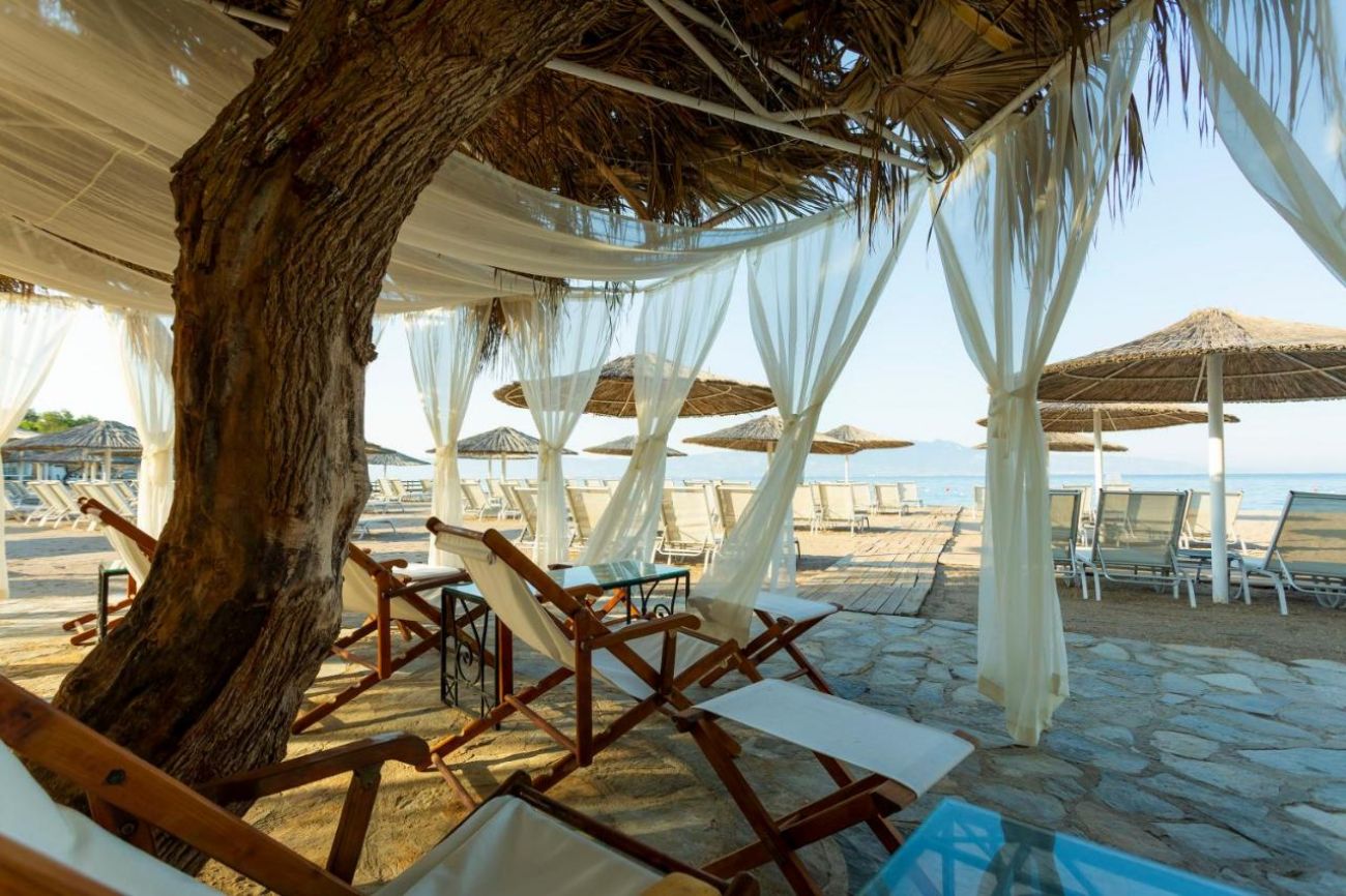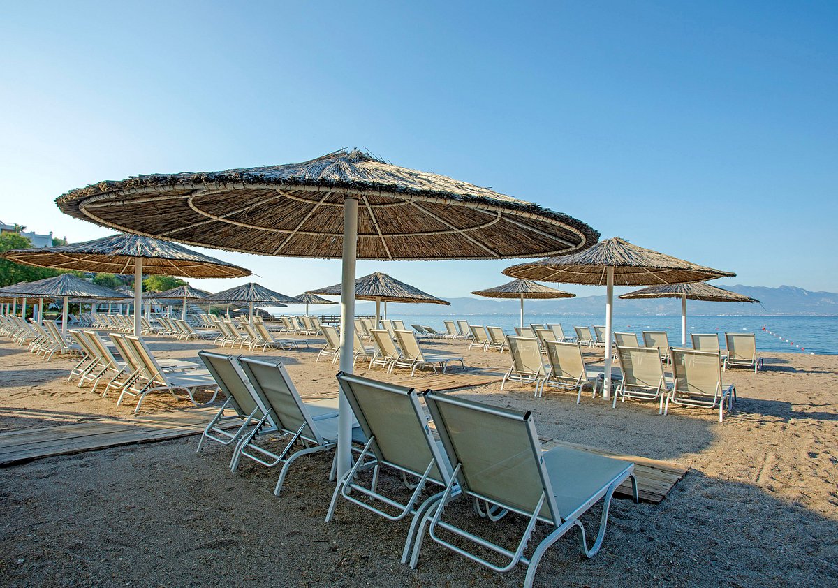 Собствен, пясъчен със Син флаг - чадъри, плажни кърпи и шезлонги на плажа и при басейна- безплатни.