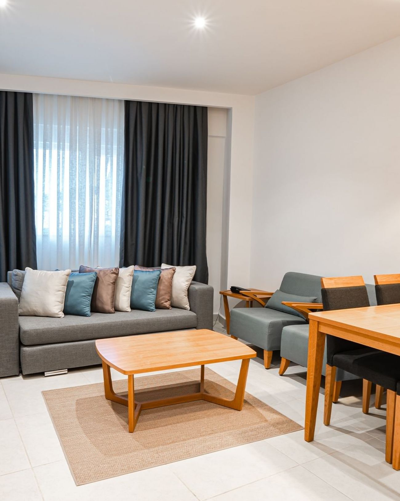 Хотелът разполога с общо 265 стаи, разположени в 4 блока: Superior Room (34 м²), Junior Suite Room (1 спалня, хол - 53 м²), Family Suite Room (2 спални, хол - 71 м²). Всички стаи са оборудвани с климатик, телевизор, телефон, баня с душ или вана, сешоар, сет за чай/кафе, минибар (безплатно еднократно зареждане с вода и безалкохолни напитки при настаняване), сейф (безплатен), балкон, Wi-Fi. Почистване на стаите – всеки ден, смяна на спалното бельо – 2 пъти в седмицата, смяна на кърпите – 3 пъти в седмицата.