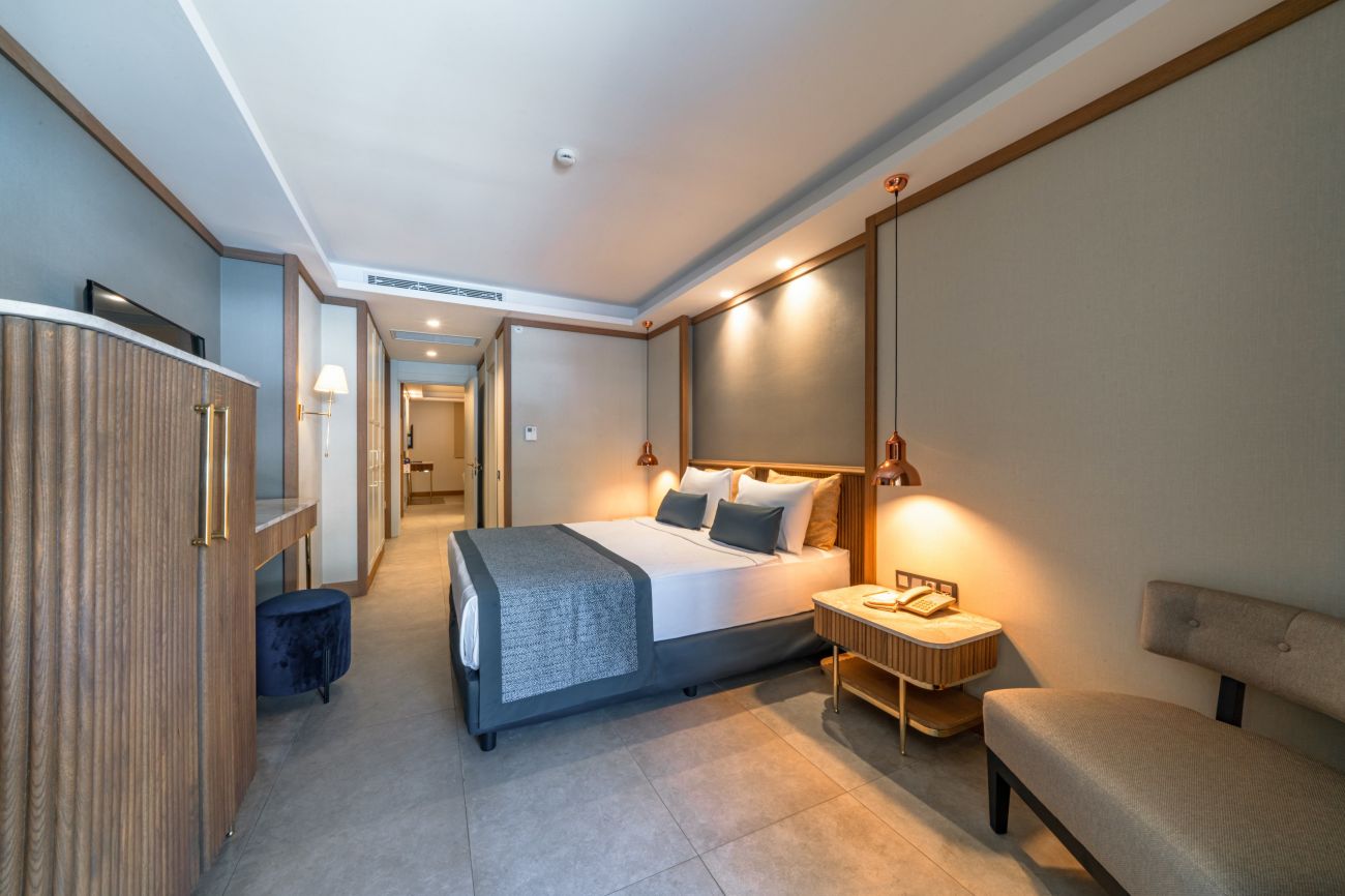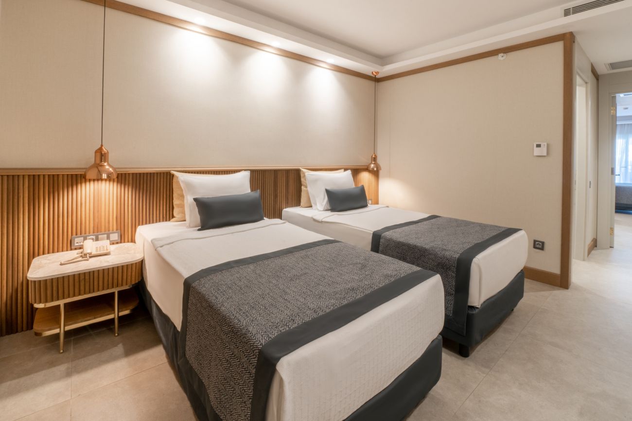 Хотелът разполага общо с 362 стаи в една основна сграда, от тях 132 стандартни (30 m²), 85 делукс (37 m²), 137 фамилни (41 m²) и 8 апартамента (35 - 150 m²). Всички стаи са оборудвани с климатик, телевизор, телефон, баня с душ, сешоар, сет за кафе и чай, мини бар, сейф (безплатно), балкон, WI-FI на цялата територия на хотела. Почистване на стаите и смяна на кърпите - всеки ден, смяна на спално бельо - 3 пъти седмично.
