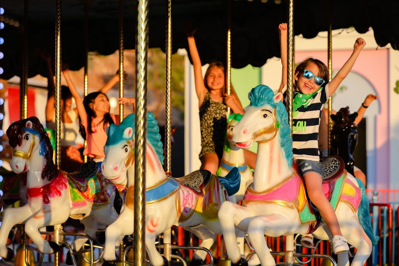 CANDYTOWN LUNA PARK е мястото за неверятно забавления по време на Вашия престой. Паркът представлява комплекс от различни забавления за всички възрасти. Малките гости могат да се забавляват в детското градче - миниатюра Portaventura Kids World (шопинг мол, пожарна, поликлиника, полиция, банка, театър, лего стая, фитнес и много други детски обществени сгради), с площ 5000 кв. м. Там могат да участват в различни групи за занимания и да получат сертификат. Разбира се, не трябва да пропускат и Лунапарка с 9 различни атракции включително виенско колело високо 17 метра, както и детска въртележка, картинг, лабиринт с лазер игри, детско влакче на ужасите и 8D кино. Има мини клуб за деца между 4 и 7 годишна възраст, който може да предложи на малките посетители детски фитнес, арт занимания, мини диско, игрална площадка, детска йога и безброй други забавления. За малко по-големите (на възраст между 8 и 12 години) в макси клуб се предлага търсене на съкровища, оригами, баскетбол, волейбол, водно поло, сумо игри, рали, футбол и още други. Тийнейджърите в хотела могат да посетят предвидения за тях клуб, в който играят тенис на маса, футбол, дартс, търсене на съкровища, игрална зала (playstation 5 и компютърни игри), бинго, баскетбол, кино, уроци и много други. Дино парк с 12 динозаври в реални размери. Най-новите атракциони са тематичния парк Candyland и виенското колело. Работно време в периода 01.05-15.10 от 20.00 до 23:00 (може да варират спрямо метеорологичните условия).
