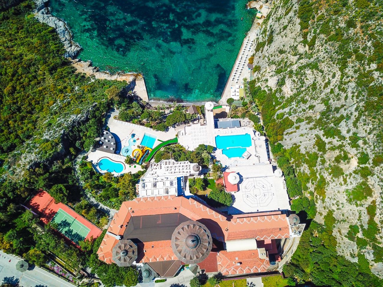 Хотелът се намира на 75 км от летище Измир, на 130 км от летище Милас, на 2 км от центъра на Кушадасъ. Разположен в уединен залив на брега на морето.