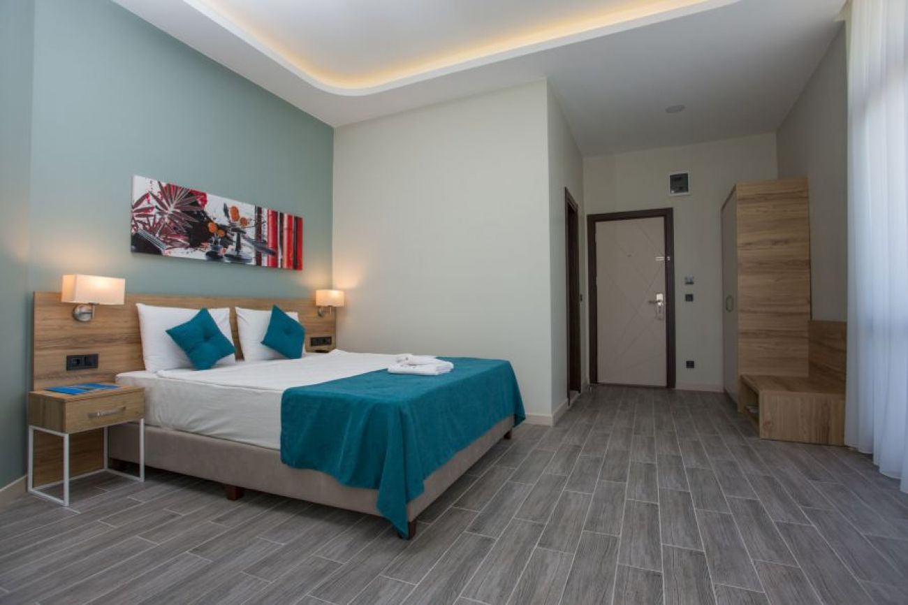 Разполага със 110 стаи, от които 106 стандартни (15-22 кв.м) и 4 фамилни (40 кв.м), 1 суит. Всички оборудвани с климатик, телевизор, баня с душ или вана, сешоар, минибар (платен), сет за чай/кафе, сейф (безплатен), балкон. По-голямата част от стаите имат невeроятна гледка към морето. Почистване на стаите - всеки ден. Смяна на спалното бельо и кърпите - 3 пъти в седмицата.
