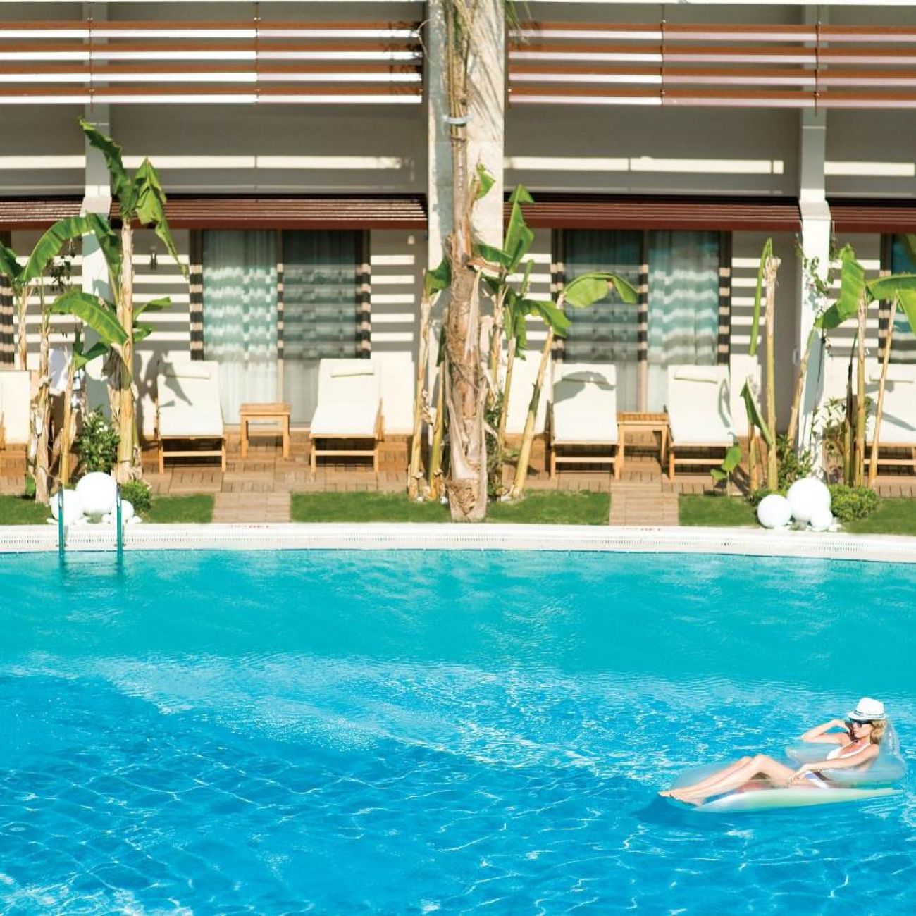 Хотелът разполага с общо 268 стаи, разпределени в два 5-етажни корпуса: 88 Standard garden view (33 кв.м), 104 Standard sea view (33 кв.м), 36 Standard Pool Side (директен достъп до басейна, с индивидуална тераса с шезлонги - 33 кв.м), 20 Terrace Suite стаи (директен изглед към море, джакузи на терасата, безплатен рум сървис 24/7, комплимент при настаняване - 70 кв.м), 20 Family Suites (гледка градина, спалня и всекидневма с преградна врата, баня с душ и вана - 65 кв.м), 2 Handicapped (пригодени за хора с ограничена подвижност - 33 м2). Всички стаи са оборудвани с климатик, телевизор, телефон, баня с душ, сешоар, сет за чай/кафе, минибар (ежедневно зареждане с вода и безалкохолни напитки - безплатно), сейф (безплатно), балкон.