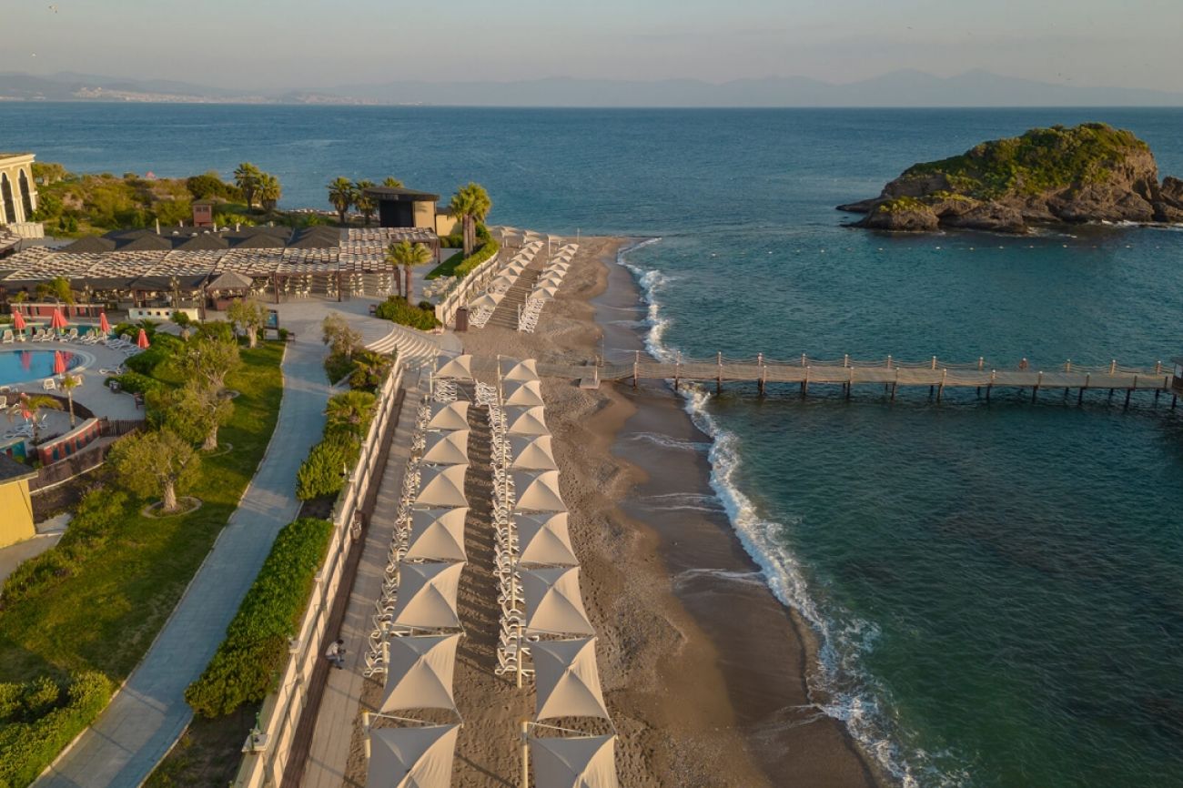 Намира се на 35 км от летище Измир, на 160 км от летище Милас, на 35 км от центъра на Кушадасъ и на 3 км от центъра на Йоздере. Построен през 2015 г., с обща площ 45 000 м².
