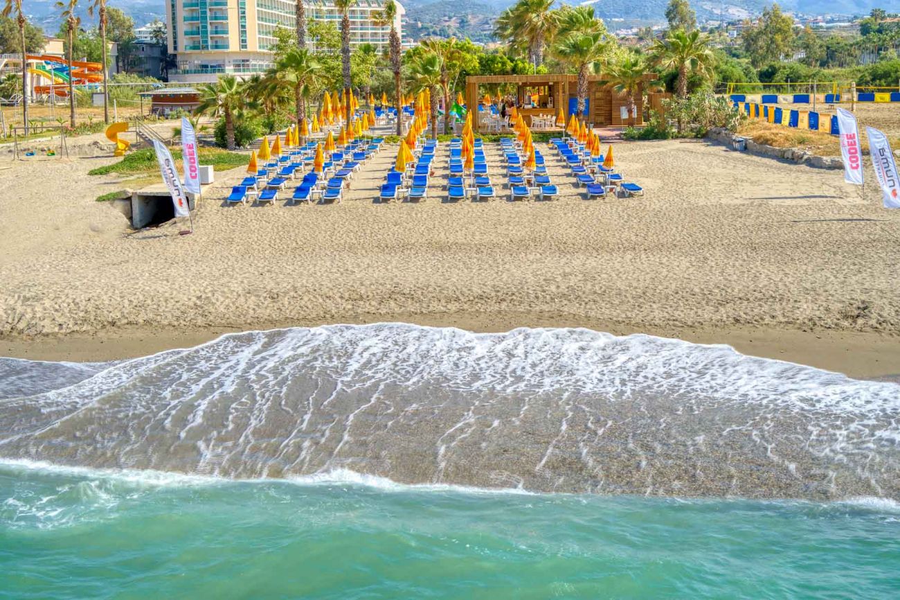 Намира се на 116 км от летище Анталия, на 126 км от центъра на Анталия, на 12 км от центъра на Алания, на брега на морето. Построен 1997 г., на обща площ от 10 000 м2. Частично реновиран 2019 и 2022 г.