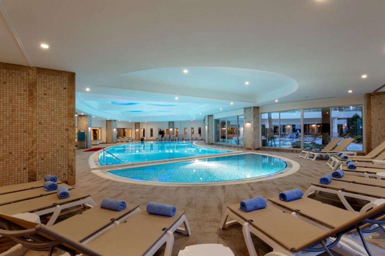 Основен ресторант, 2 а - ла - карт ресторанта, 6 бара, 3 басейна, аквапарк. За децата: детски басейн, аквапарк, анимация Безплатни услуги: сауна, турска баня, фитнес, аеробика, мини клуб, мини - футбол, дискотека - напитки платено, безжичен интернет в лоби бар, баскетбол, сейф, дартс. Платени услуги: масаж, детегледачка, осветление тенис корт, билярд, уроци по тенис, водни спортове, фризьор, Интернет кафе, мини футбол, център за красота, СПА-център, билярд. Плаж: Пясъчно - чакълест. Плажни чадъри, матраци и шезлонги – безплатно.