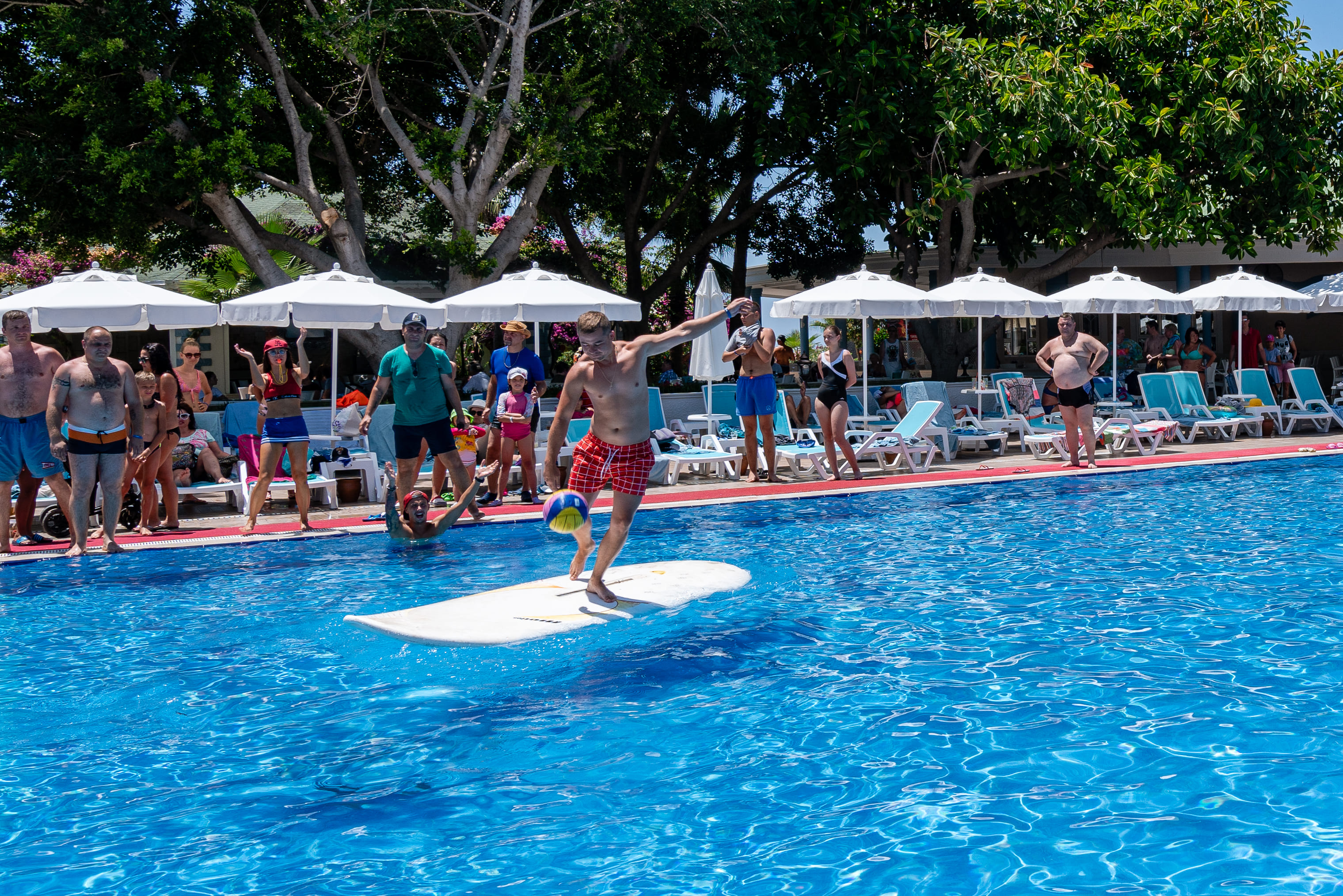 Хотелът разполага с основен ресторант, 3 бара, плувен басейн, детски басейн, водни пързалки, СПА център, фитнес, тенис на маса, тенис корт, конферентна зала.