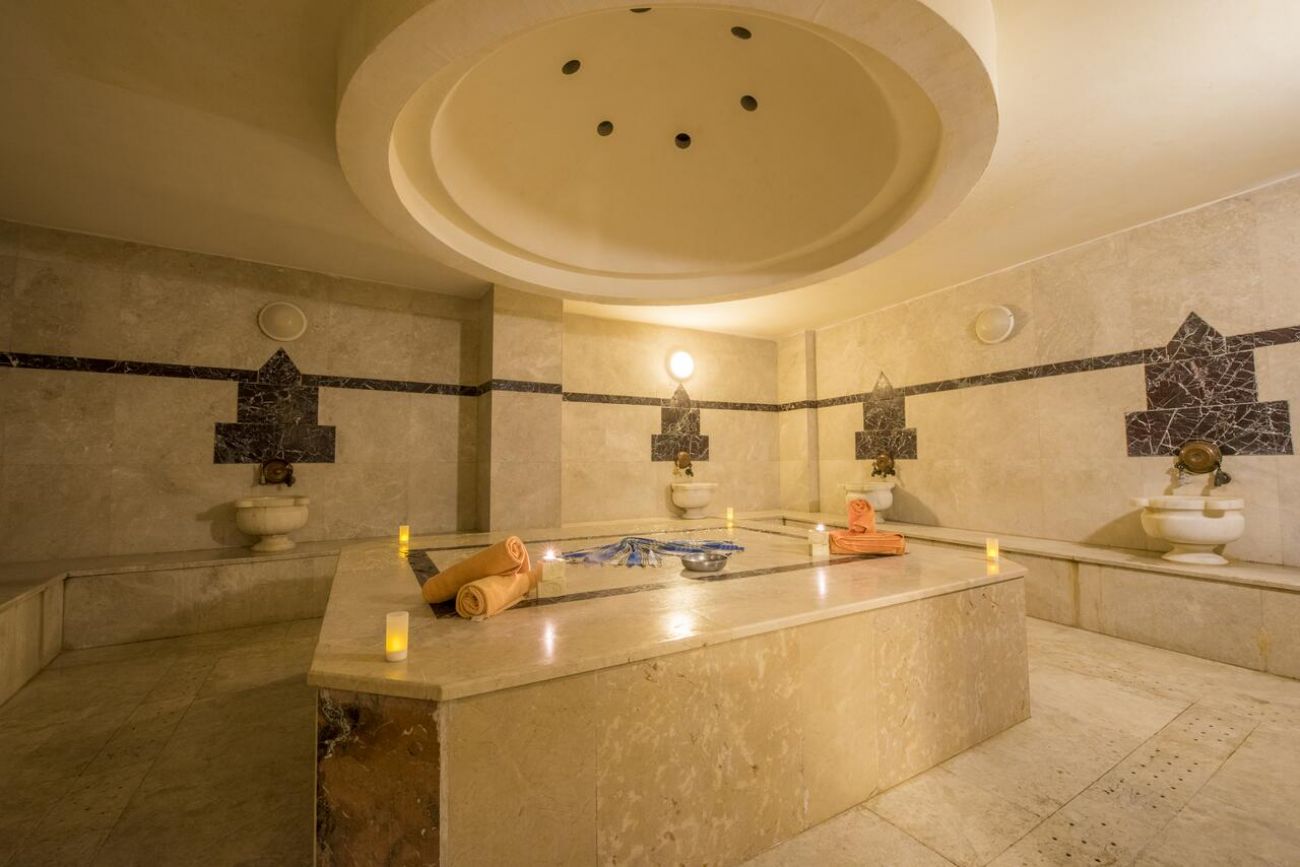 Oсновен ресторант, 2 а-ла-карт ресторанта (турски и рибен -платено), лоби бар,бар на плажа, снек панорамен ресторант, воден бар, дискотека, 2 басейна, вътрешен басейн (работи през зимата), водни пързалки, салон за красота, СПА център, фитнес, сауна, парна баня, релакс стаи, масажи, турска баня, анимация, магазин, конферентни зали. За децата: детски басейн. Безплатни услуги: турска баня, сауна, wifi, фитнес център, тенис на маса, тенис на корт, дарц, боча, игри до басейна и на плажа, плажен волейбол, гимнастика, Платени услуги: джакузи, билярд, масаж, факс, лекар, химическо чистене, коли под наем, джет, парасейлинг, осветление и екипировка за тенис корт.