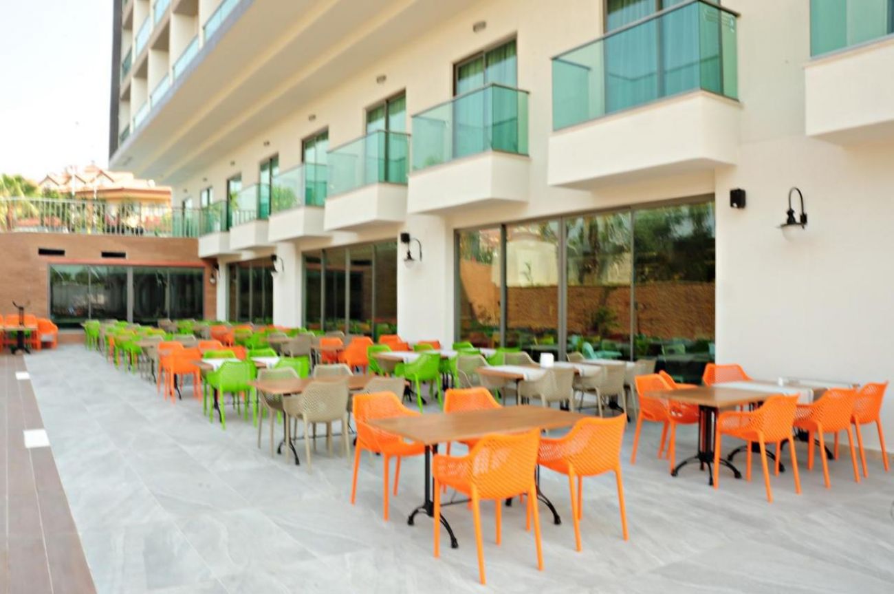 Основен ресторант, барове, открит и закрит басейн, 2 водни пързалки, СПА център, магазини, дискотека, WI-FI(в лоби). За децата: Детски басейн, мини клуб(4-12), детска площадк, мини диско. Безплатни услуги: Сауна, турска баня , парна баня, фитнес, тенис на маса, дартс, билярд, плажен волейбол, аеробика, водна гимнастика, анимация, WI-FI. Платени услуги: Масаж, пилинг, фризьор, химическо чистене, лекар, водни спортове, детегледачка , рент-а кар.