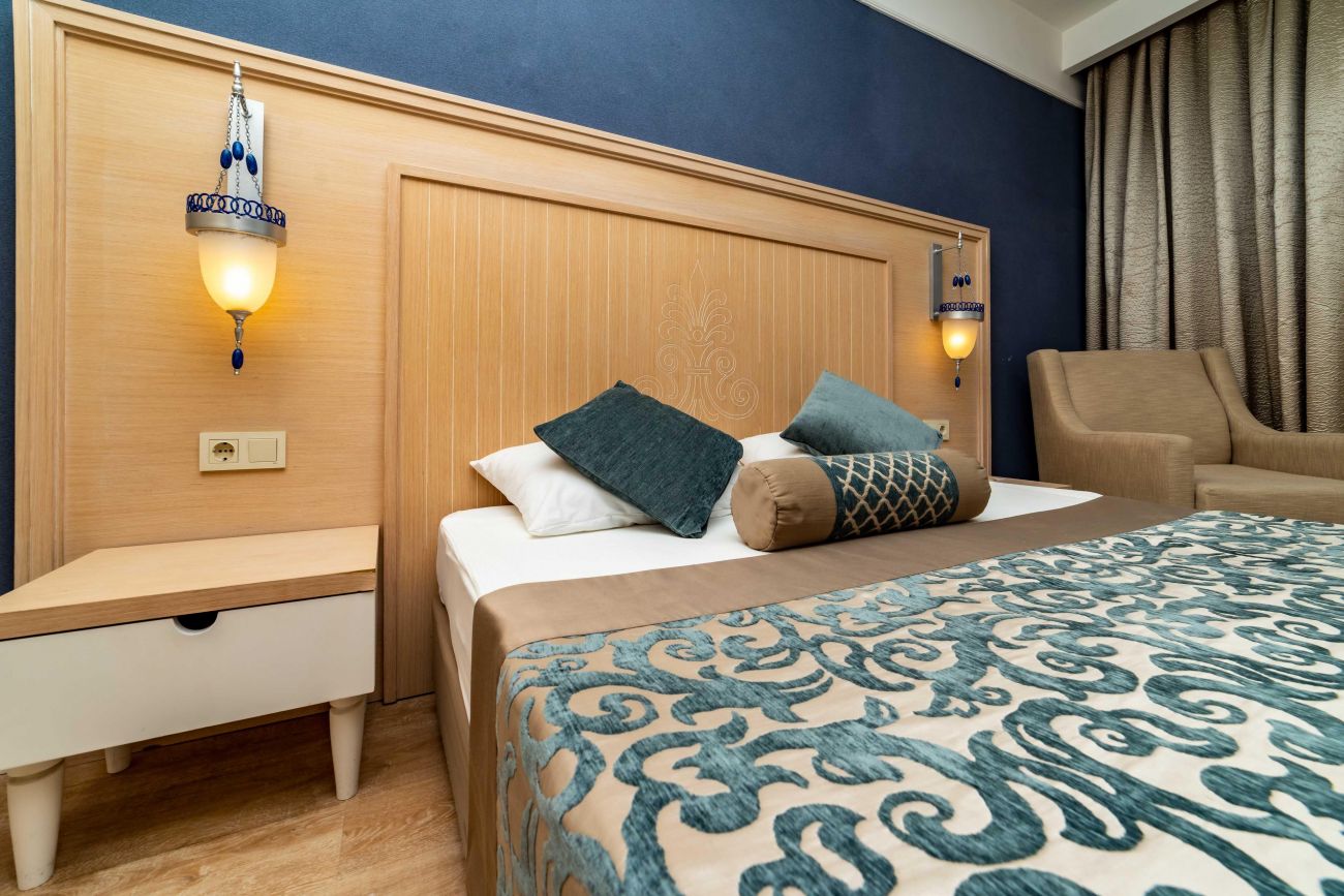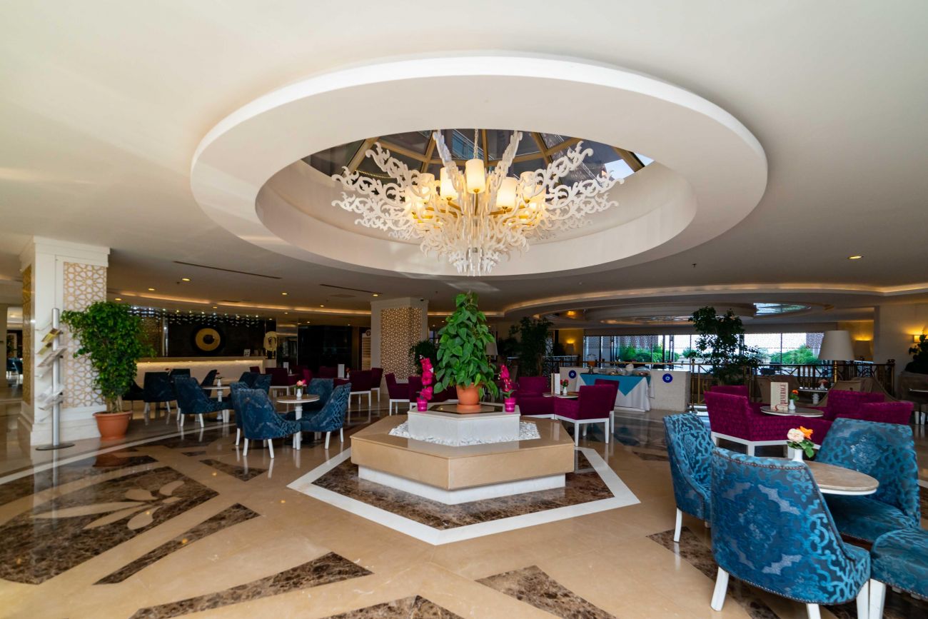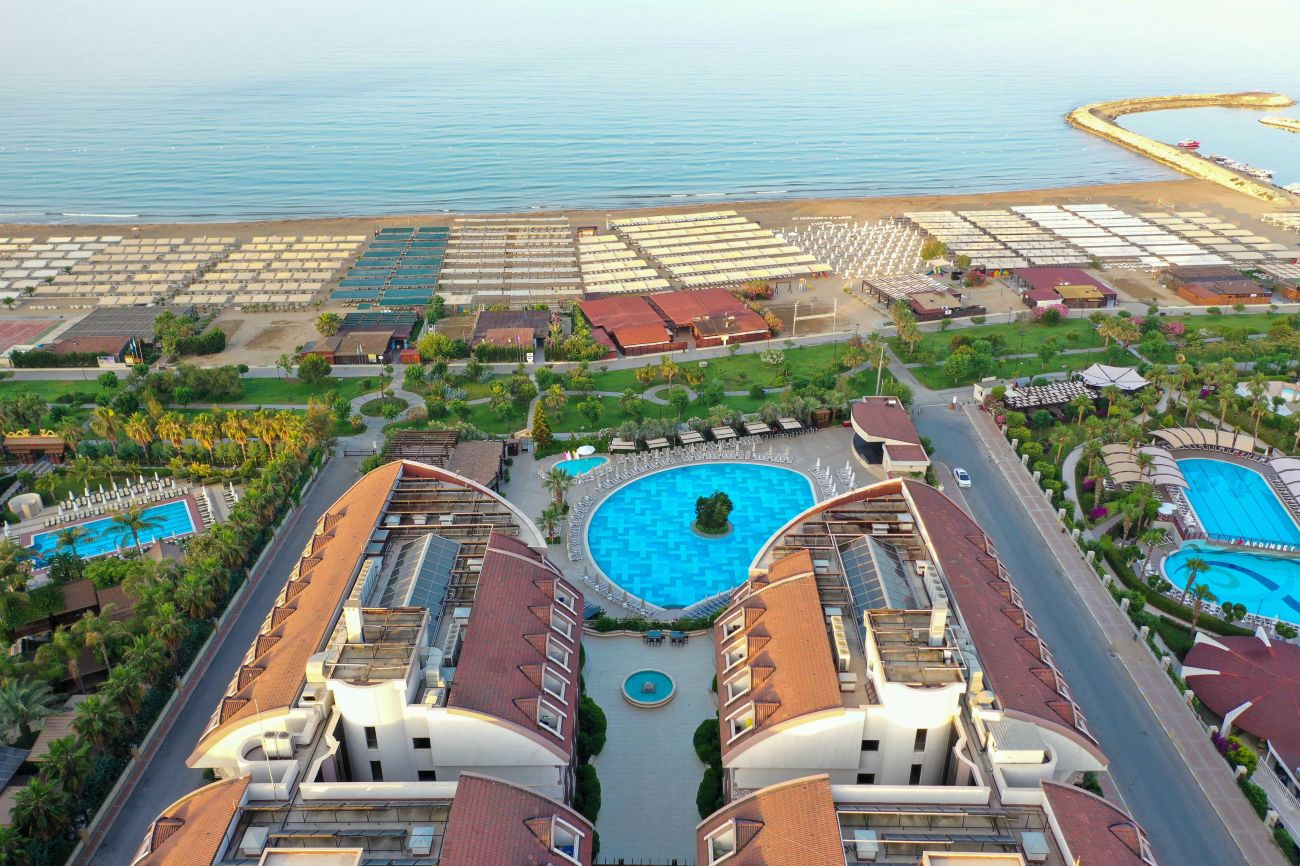 Основен ресторант, 4 а - ла - карт ресторанта (рибен, турски, италиански и китайски, с предварителна резервация, за едноседмичен престой - едно безплатно посещение на един ресторант), сладкарница, 6 бара, 2 открити и 1 закрит басейн, водни пързалки, амфитеатър, дискотека, мини маркет, 4 конферентни зали. За децата: 2 детски басейна – открит и закрит, мини клуб (4-12 г.), тийни клуб (11-15г.) – 6 дни в седмицата, детска анимация, лунапарк. Безплатни услуги: Сауна, турска баня, аеробика, дартс, тенис на маса, степ, боча, плажен волейбол, анимация, Wi-Fi (в лоби). Платени услуги: Масаж, Спа център, лекар, фризьор, рент-а-кар, химическо чистене, боулинг, билярд, интернет, електронни игри, водни спортове, фрешове на плажа. Плаж: Собствен - пясъчен, удостоен със сертификат „Син флаг”. Чадъри, шезлмонги, матраци и плажни кърпи на плажа и при басейните - безплатно.
