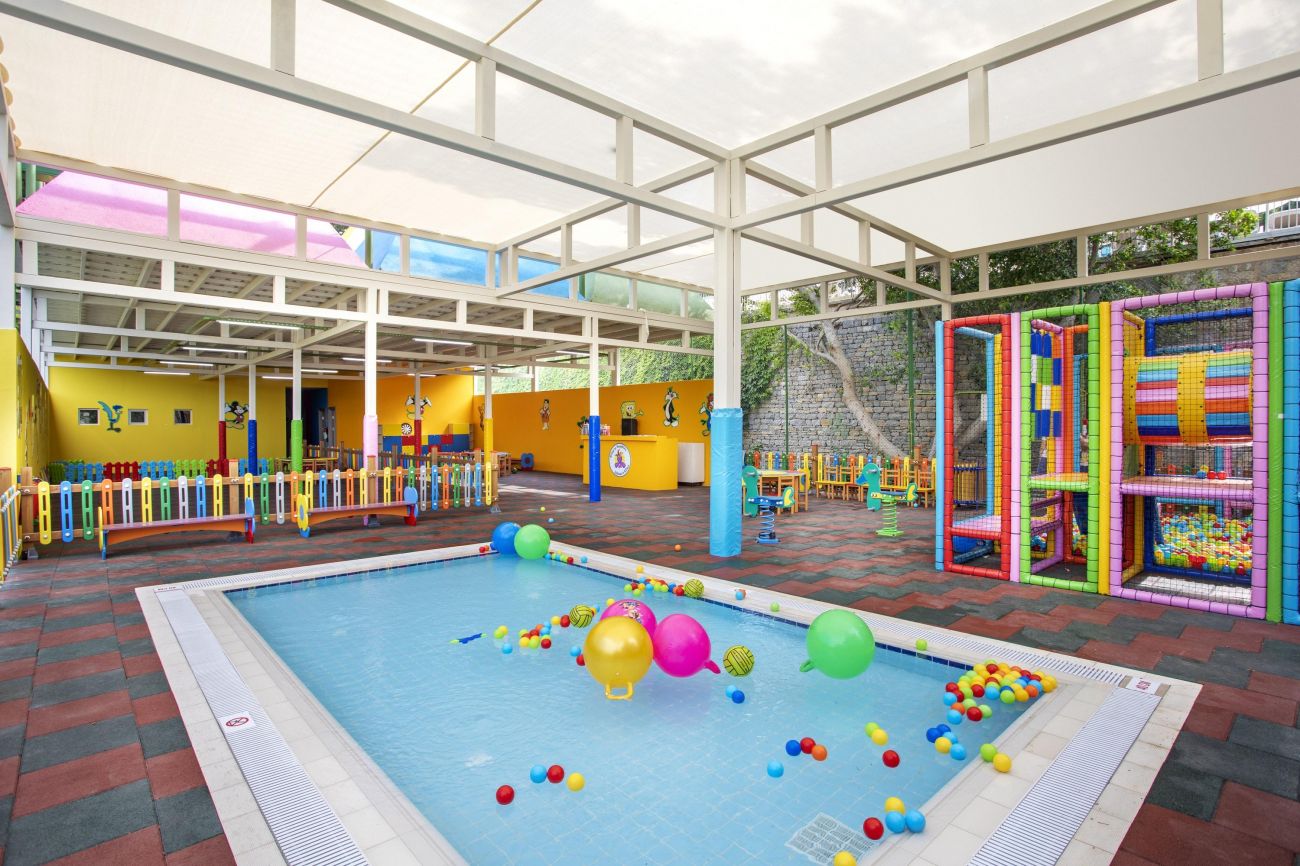 За децата: анимация, детско меню, външен и вътрешен детски басейн, водни пързалки, детска площадка, мини клуб (4–12 г.).