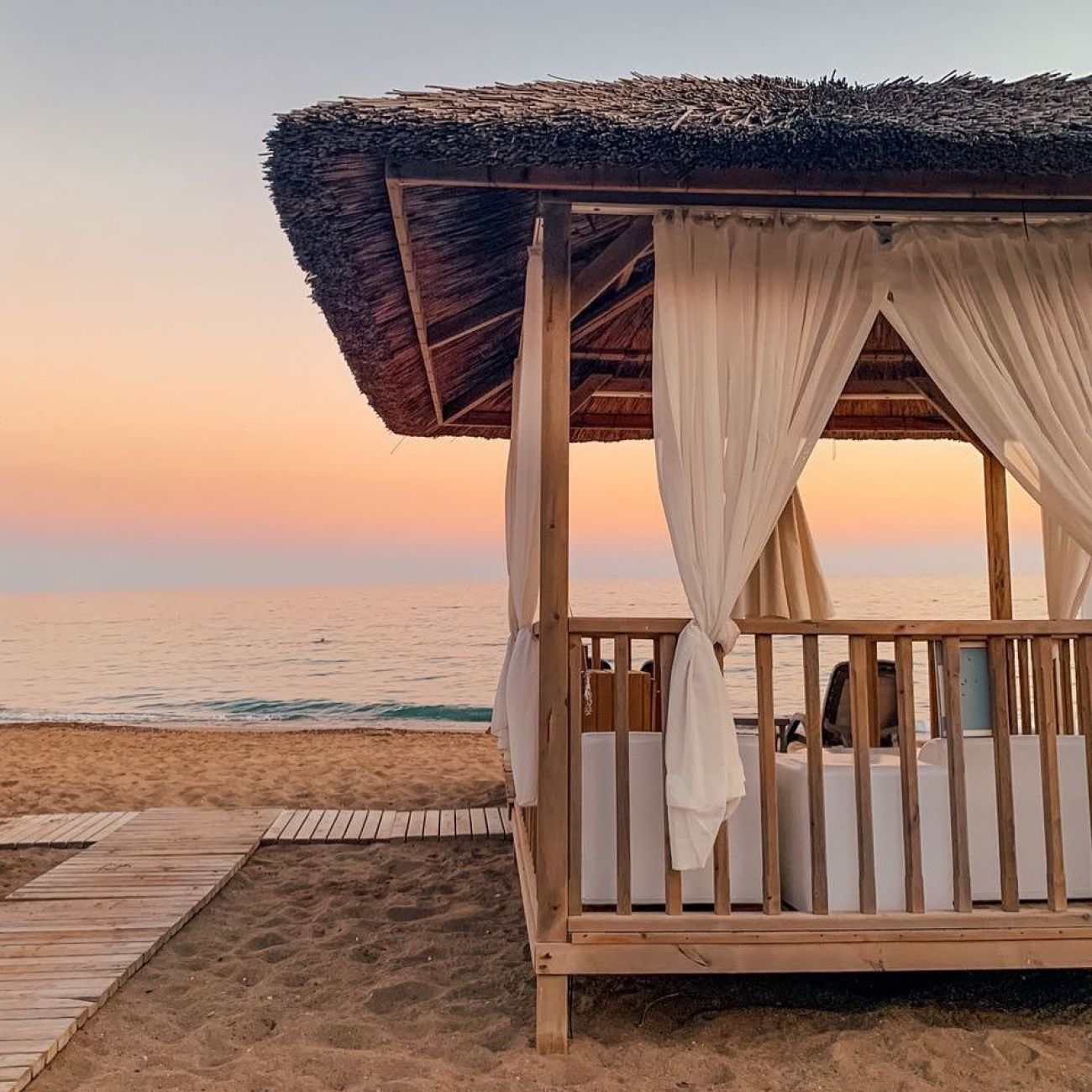 Собствен, пясъчен, със сертификат Син флаг. Чадъри, шезлонги и матраци на плажа и при басейна – безплатно. Плажни кърпи – безплатно.