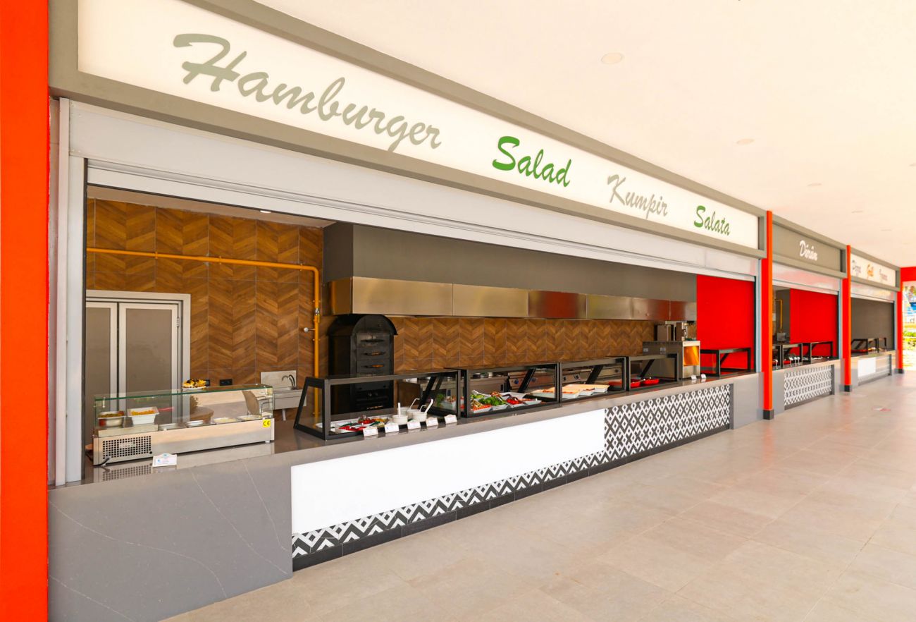 Основен ресторант, 4 a la carte ресторанта (турски и италиански - с предварително записване, за целия престой се полага 1 посещение на едни от тях - безплатно; рибен и мексикански - платени), 8 бара (едни от тях работи 24 часа), сладкарница, дискотека, 2 открити и 1 закрит басейн, 3 водни пързалки, Спа център, магазини, фризьорски салон, лекарски кабинет, пералня.