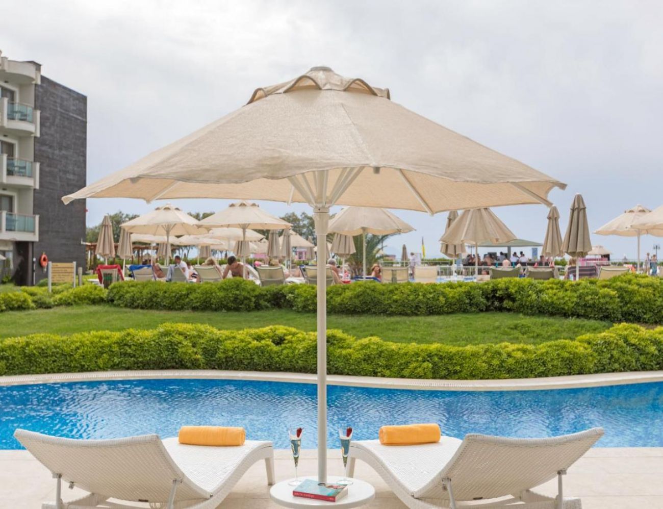 Собствен пясъчен плаж. Чадъри и шезлонги на плажа и при басейна - безплатно.