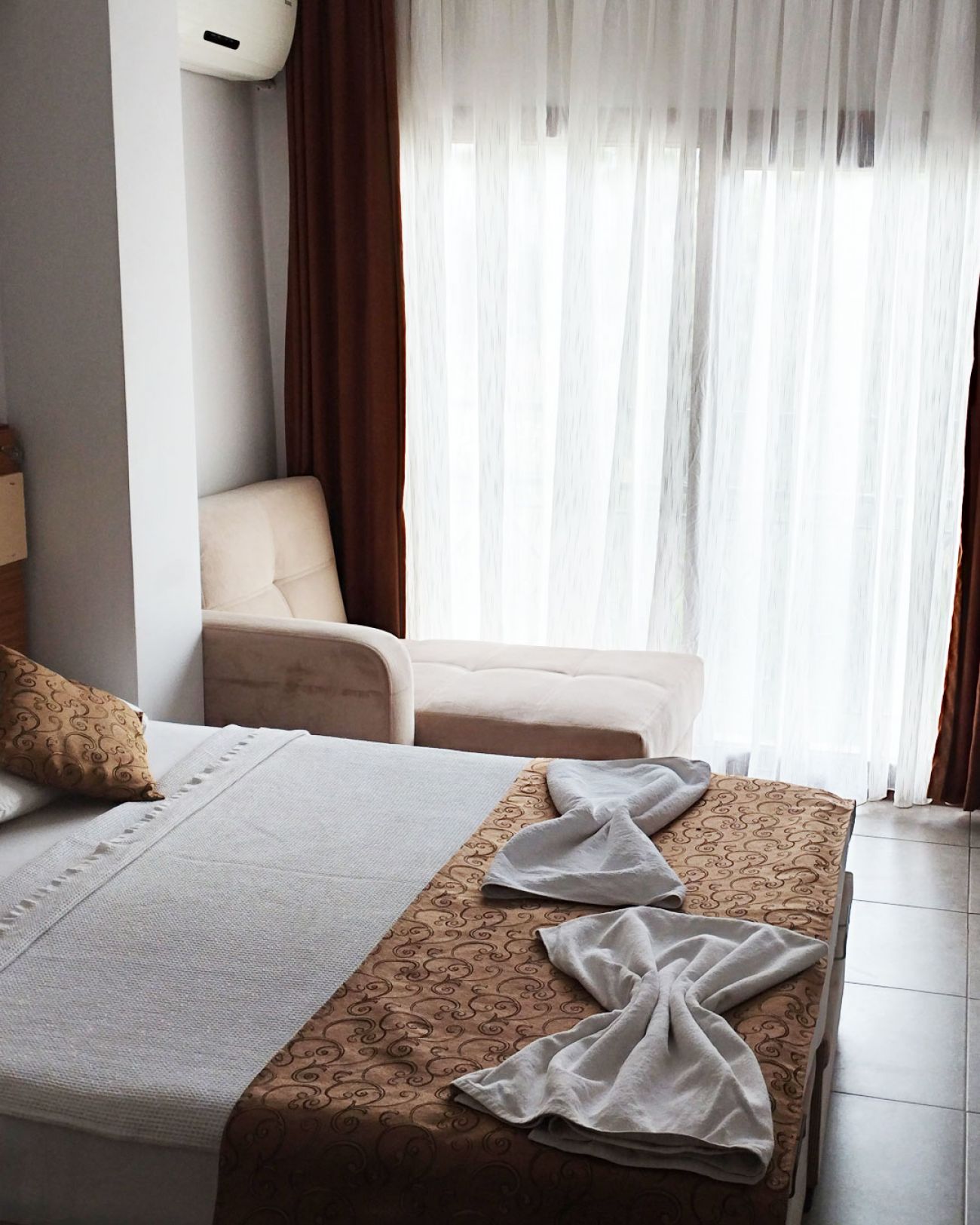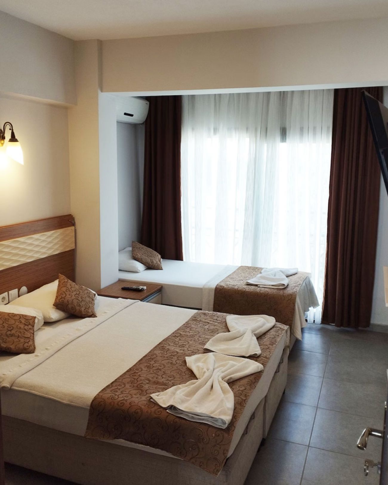 Хотелът разполага с 34 стаи, от които 22 двойни, 10 тройни и 2 апартамента, всички оборудвани с климатик, телефон, телевизор, баня с душ, сешоар, минибар, френски балкон или тераса.