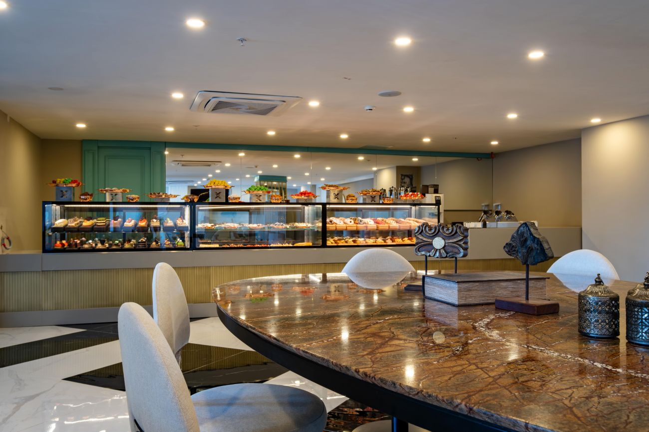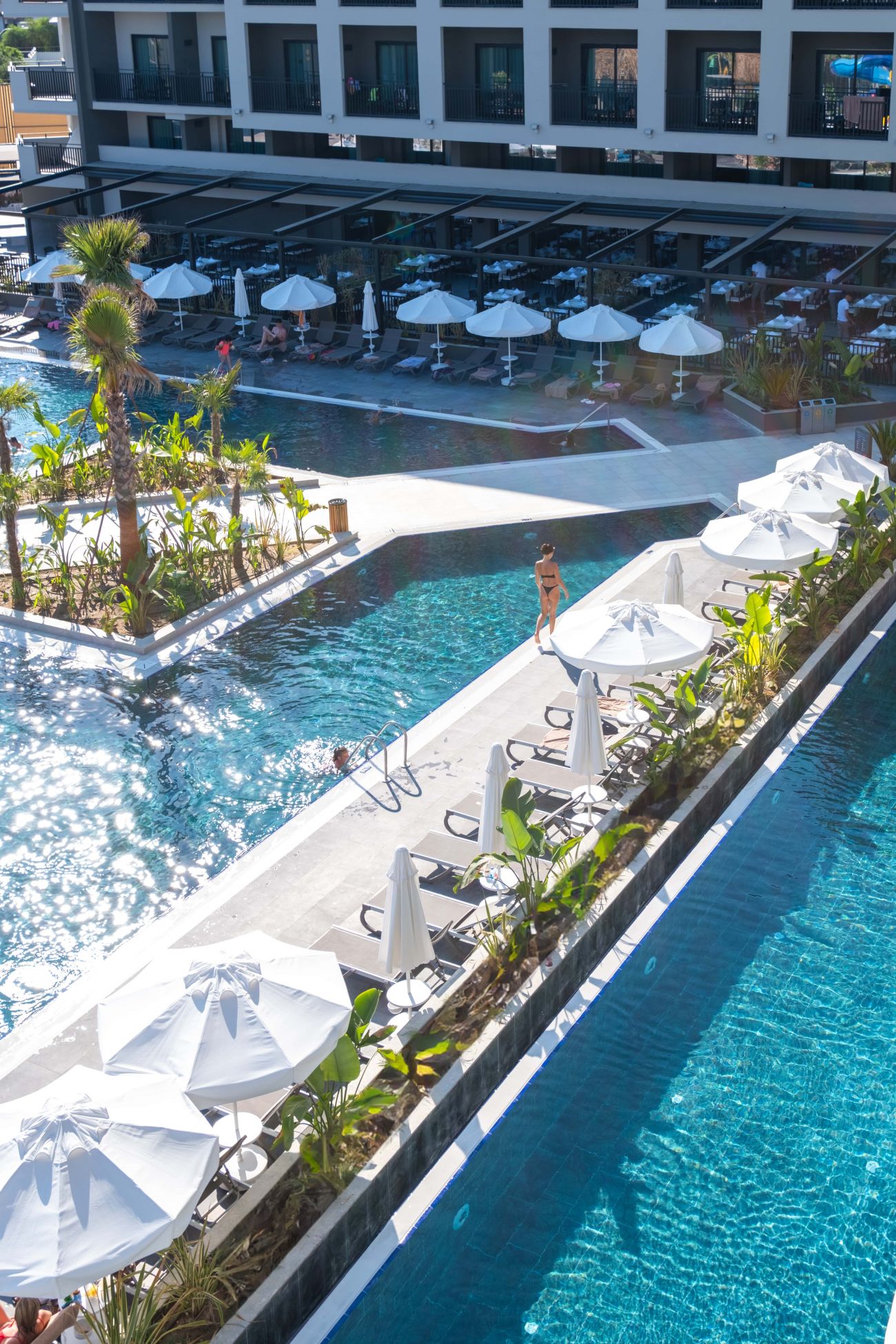 3 основни ресторанта (Gourmet, детски ресторант – IXY Planet, She & He – в зоната за възрастни), 3 а-ла-карт ресторанта - Thymàri (средиземноморски, 1 безплатно посещение при минимум 5 нощувки), Mazu (азиатски), Apollon (стекхаус) - нужна е резервация за всички а-ла-карт ресторанти, 4 бара (лоби бар, 2 бара при басейните, бар на плажа), Старбъкс кафетерия (над 16-годишна възраст), сладкарница, дискотека, 1 основен открит басейн, басейн в зоната за възрастн фитнес център, СПА център.