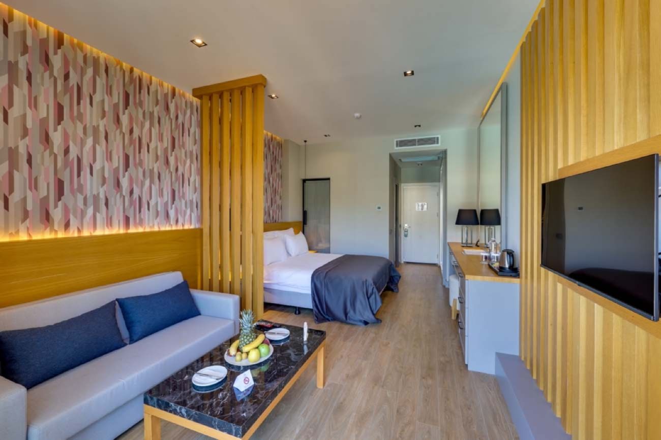 Хотелът разполага с 40 стаи, от които Superior room (35 m²) разположени на втори етаж, Premium Garden Rooms (35 m²) разположени на партерен етаж, Grande Rooms (40 m²) разположени на втори етаж. Всички стаи са оборудвани с климатик, телевизор, телефон, мини бар (само вода, в деня на настаняването), баня с вана/душ, сешоар, сет за чай/кафе, сейф, безплатен Wi-fi. Всеки ден стаите се зареждат с безплатна бутилирана вода. Смяна на кърпи и спално бельо - при поискване, почистване на стаите - ежедневно.