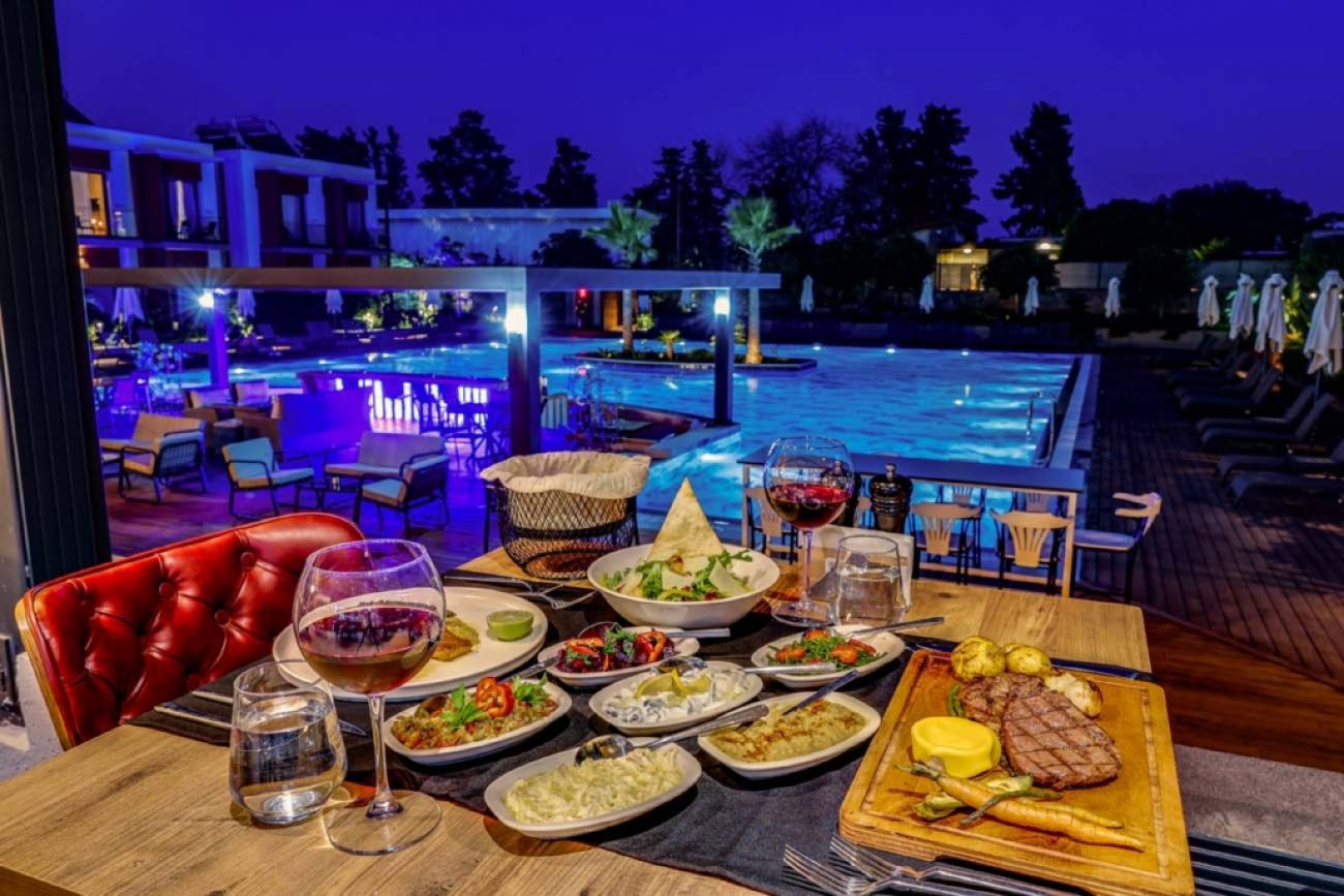 Един основен ресторант - The BABA Q Restaurant (предлага A-La-Cart меню) с уникално кулинарно изживяване с прясно приготвена здравословна храна. На територията на хотелът има и два бара : The Lounge & Bar и The Blue Bar.