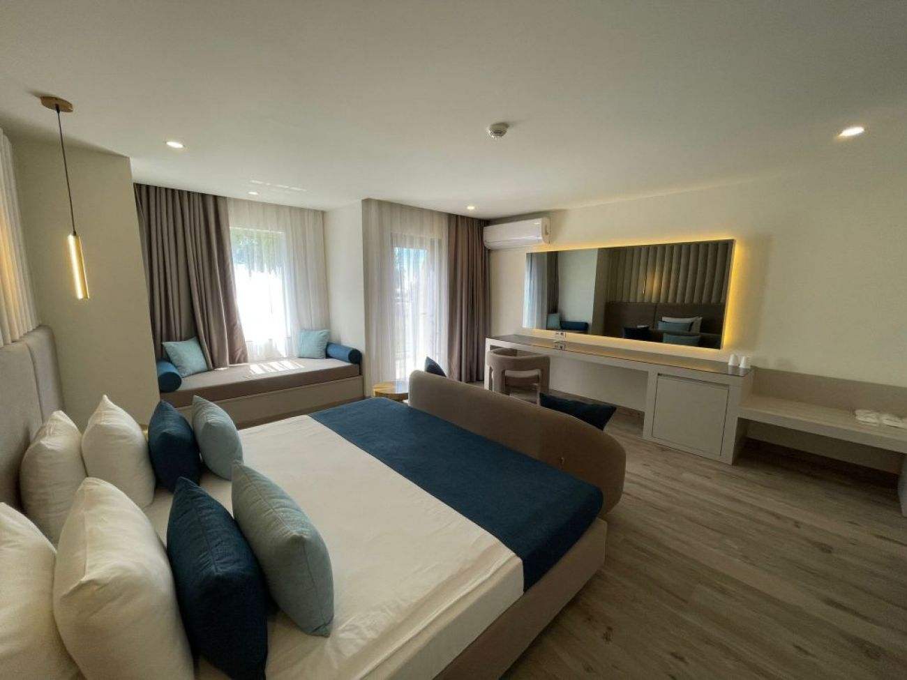 Стаи Main Building: 116 Standard Land View (25 м2 – изглед към сушата), 58 Family Suite Land View (50 м2 – спалня и всекидневна, изглед планина), 64 Family Suite Sea View (32 м2 - спалня и всекидневна, изглед море), 16 King Suite (98 м2 – спалня и всекидневна, баня с джакузи - изглед градина, изглед море).