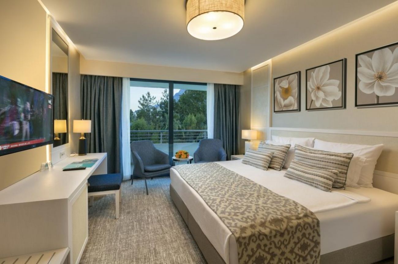 Хотелът разполага с общо 598 стаи, разположени в две пет-етажни сгради. Всички стаи са оборудвани с климатик, телевизор, телефон, баня с душ/вана, сешоар, минибар (всекидневно зареждане с вода, безалкохолни напитки, бира), сейф. Почистване на стаите и смяна на кърпите - всеки ден, смяна на спалното бельо - 3 пъти седмично.