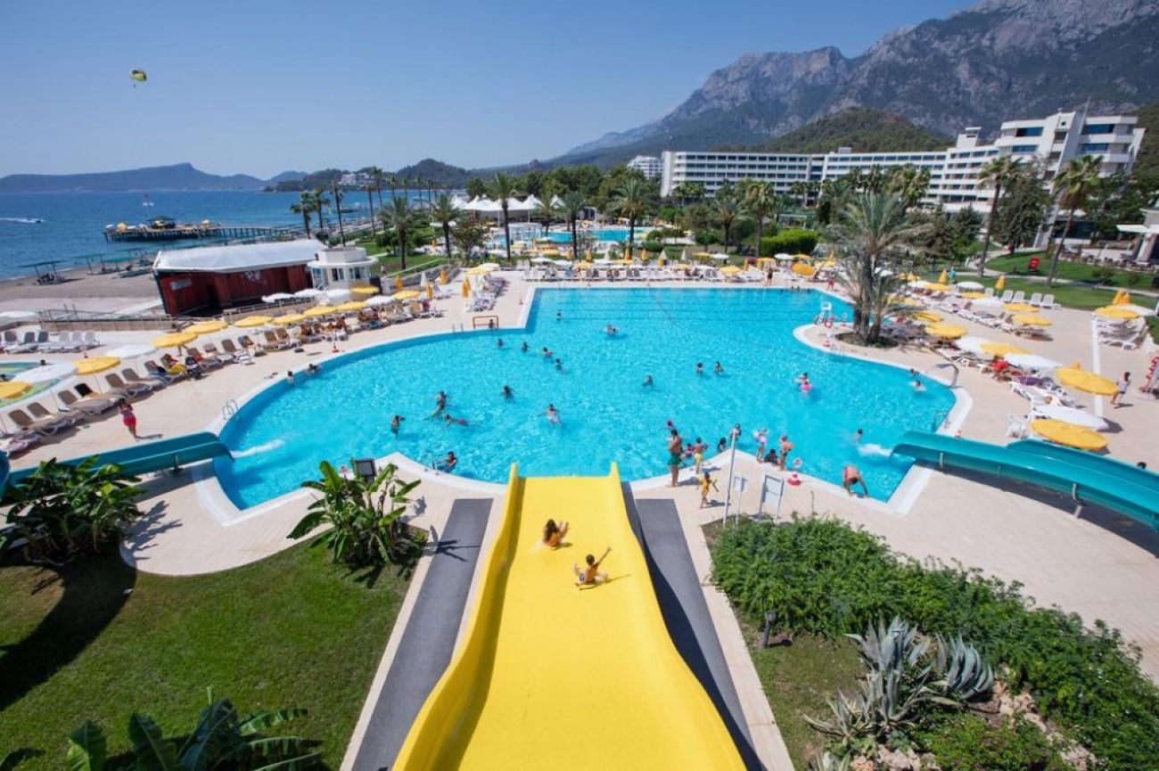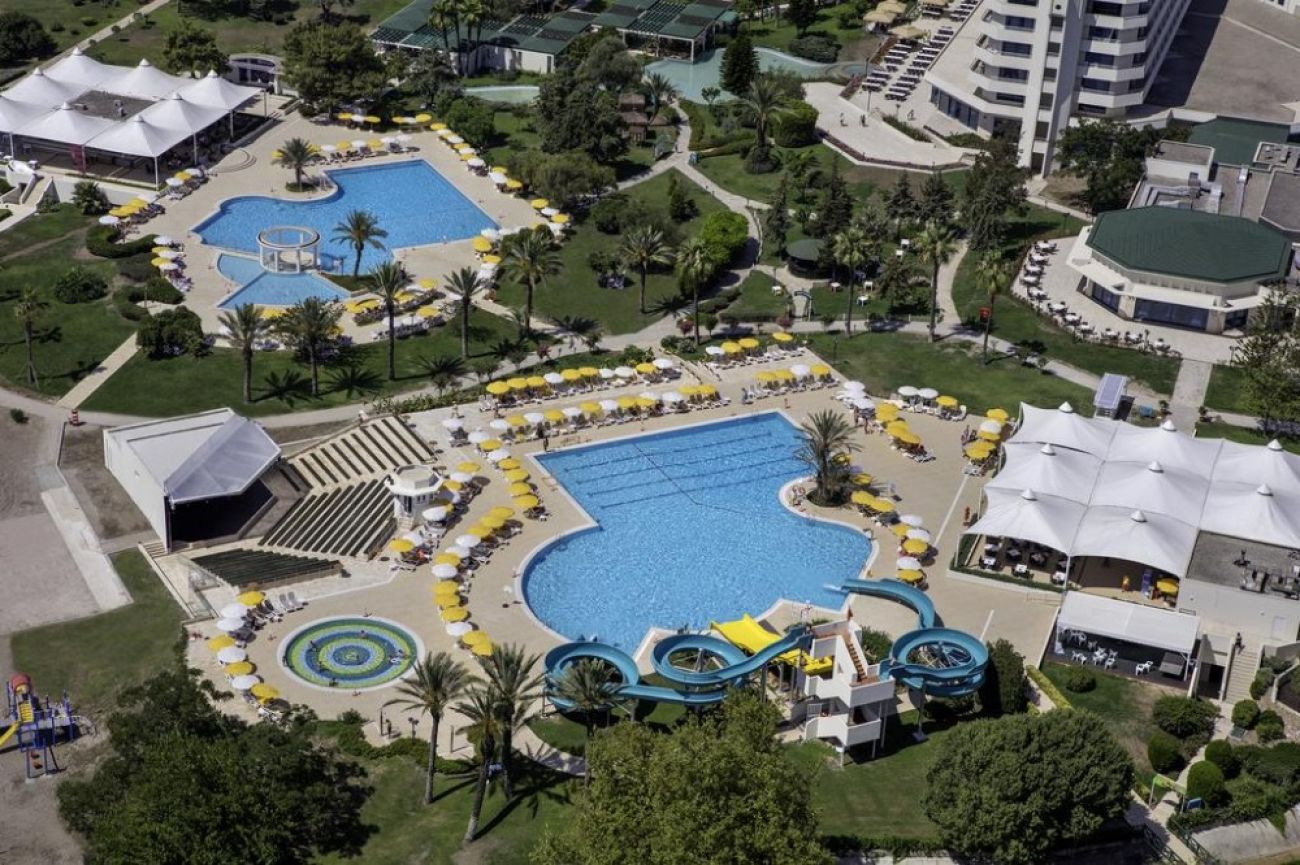 Основен ресторант, 2 а - ла - карт ресторанта (с предварителна резервация - срещу заплащане), 9 бара, 2 открити и 1 закрит басейн, водни пързалки, тенис кортове, баскетболно игрище, мини футбол, дискотека. За децата: Детски басейни – открит и закрит, мини клуб (4-7 г.), джуниър клуб (8-12 г.), детско кино, детска площадка, детски секция в основния ресторант, анимация. Безплатни услуги: Сауна, парна баня, турска баня, фитнес, аеробика, водна гимнастика, стрелба с лък, уиндсърфинг (с лиценз), тенис на маса, плажен волейбол, мини голф, тенис на корт, анимация, WiFi (в лоби). Платени услуги: Масаж, СПА процедури, фризьор, лекар, химическо чистене, боулинг, билярд, електронни игри, рент-а-кар, наем на велосипеди, спортна/тенис екипировка, осветление за тенис корт, моторни водни спортове, бизнес център. ПЛАЖ: Собствен, чакълест плаж. Чадъри, шезлонги, матраци, плажни кърпи на плажа и при басейна - безплатни.
