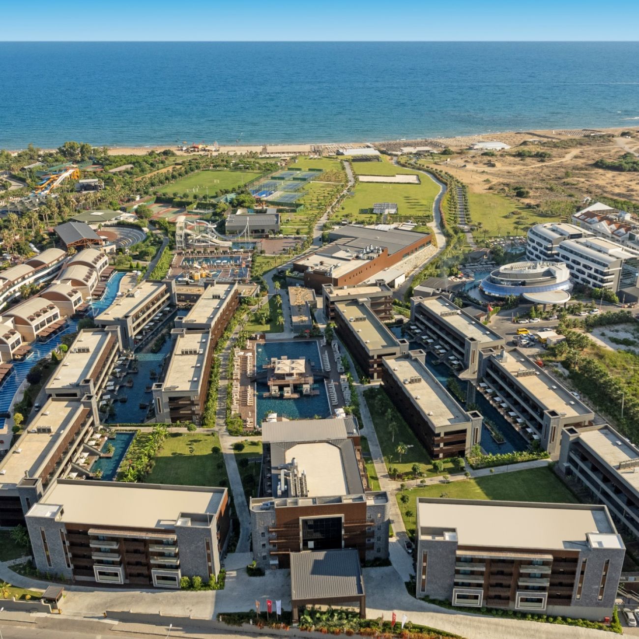 Основен ресторант, 1 а-ла-карт ресторант (с предварителна резервация, съгласно концепцията на хотела), 3 бара (1 от които 24 часа), закрит и открит басейн, аквапарк с 5 водни пързалки, СПА център.