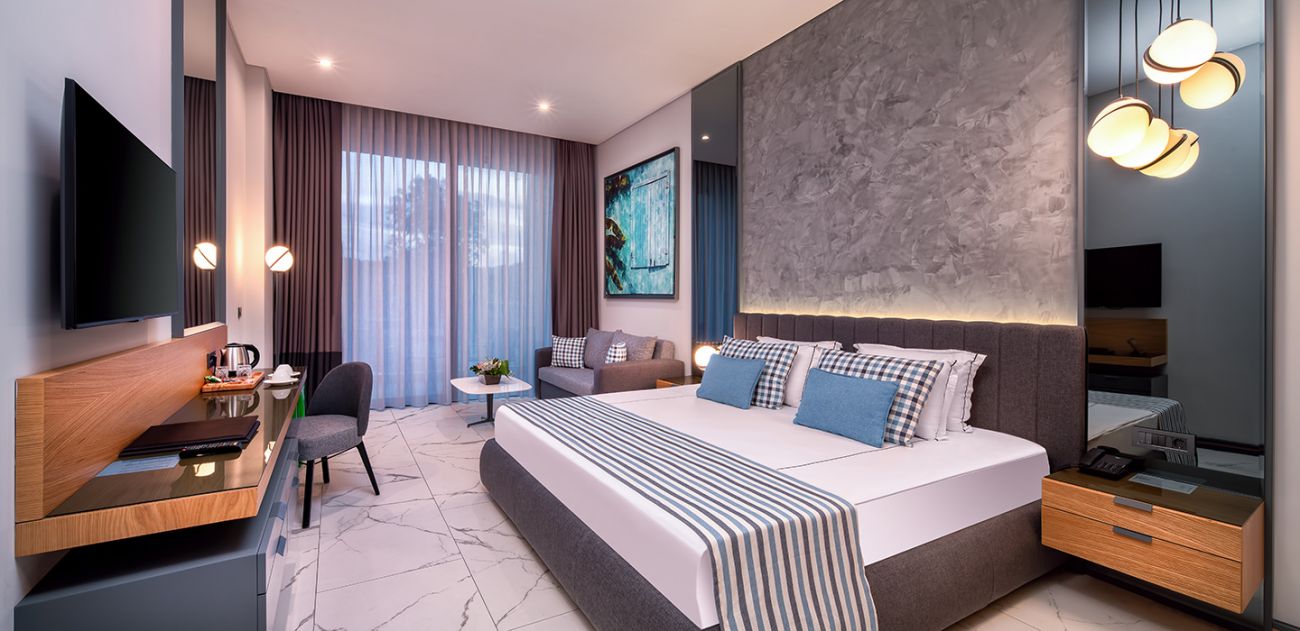 Всички стаи са оборудвани с телевизор, климатик, сешоар, вана / душ, сейф, мини бар (зарежда се всеки ден - безплатен), сет за кафе и чай, меню за възглавници.
