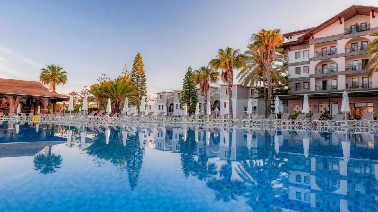 Богат набор удобства: плаж, басейни, пързалки, All Inclusive, активности.