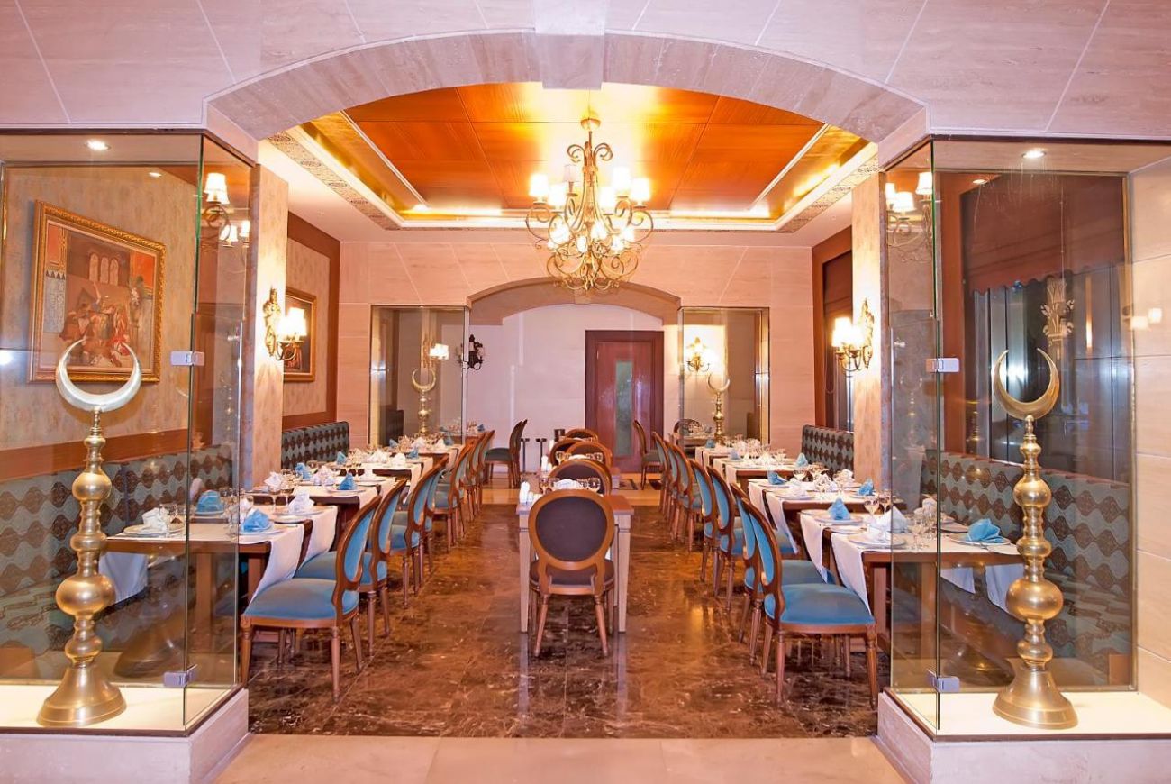 Основен ресторант, 2 а-ла-карт ресторанта (турски и италиански – 1 безплатно посещение на 1 от ресторантите при минимум 7 нощувки, с предварителна резервация), сладкарница, 4 бара, открит и закрит басейн, СПА център.