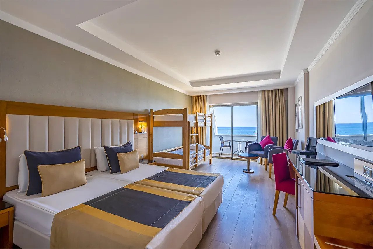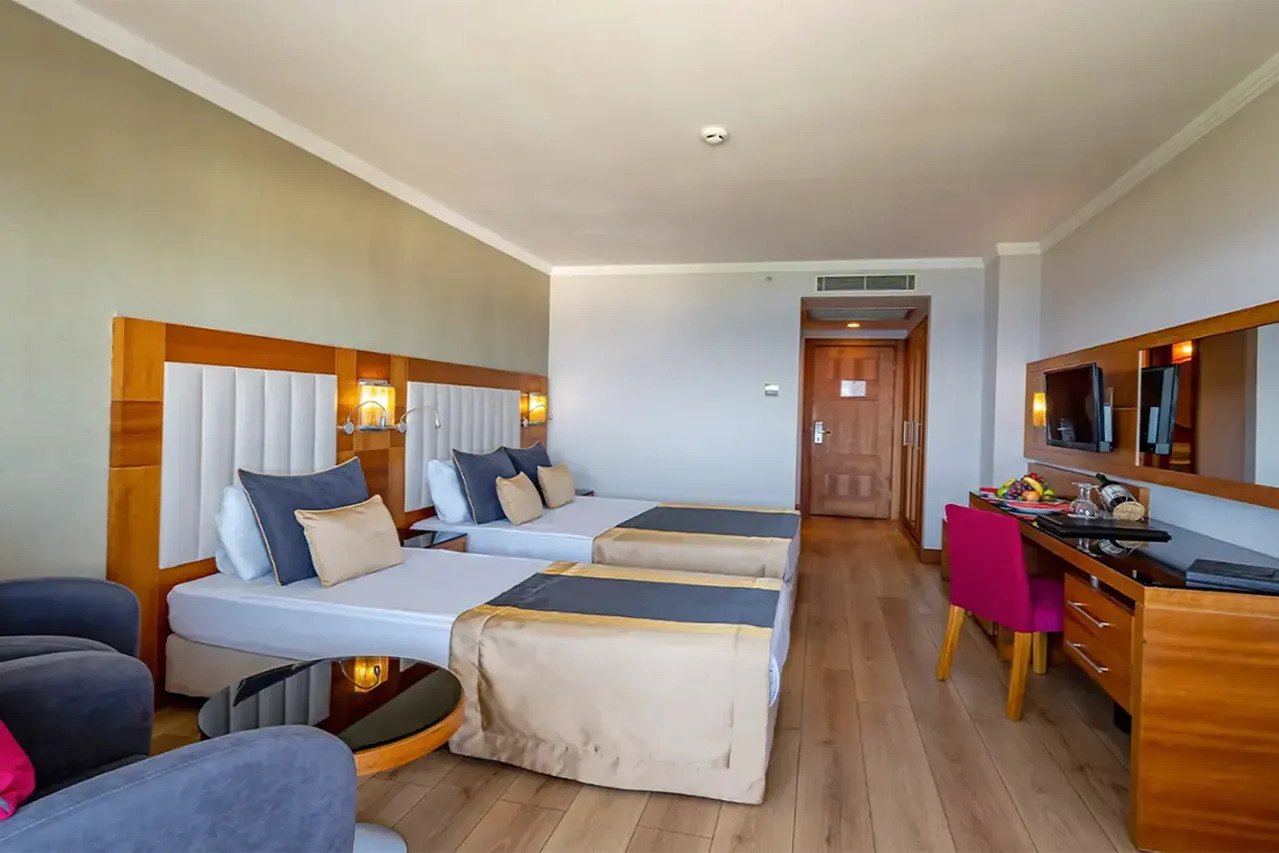 Хотелът разполага с общо 264 стаи, от които 115 Superior room land view (изглед суша- 35 м2), 101 Superior room sea view (изглед море - 35 м2), 14 Family room (2 спални, 1 баня – 55-60 м2).