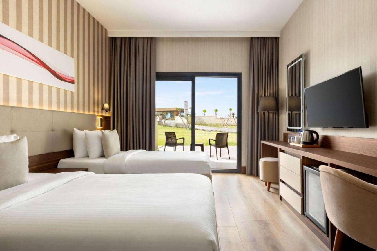 Хотелът разполага със 77 комфортни стаи (22 кв.м.) и 1 стая за инвалиди, всички оборудвани с климатик, телефон, телевизор, баня с душ/вана, сешоар, минибар, сет за чай/кафе, сейф, ютия, балнон.